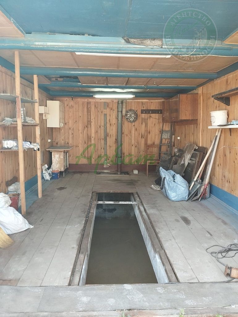 Гараж построен с учетом потребностей владельца. Металлические ворота, деревянные стены и пол обеспечивают долговечность и надежность конструкции. Внутреннее пространство продумано для хранения: под потолком есть место для личных вещей, а в сухом подвале можно разместить все необходимое.