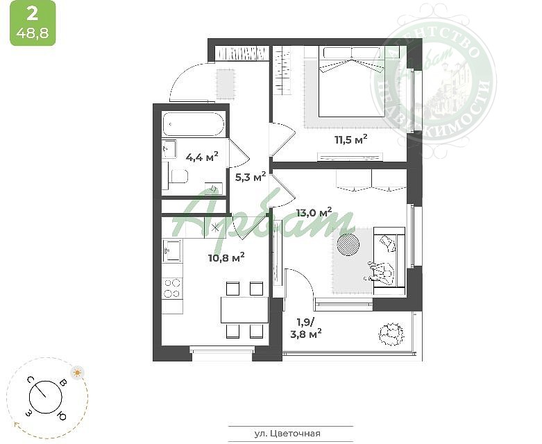 Продаётся 2-комнатная квартира общей площадью 49, 5 м в жилом комплексе Новая Тверь.